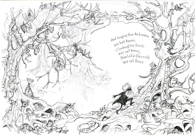| One of my pencil roughs for Halloween Forest, from the first dummy. The finished image is here |